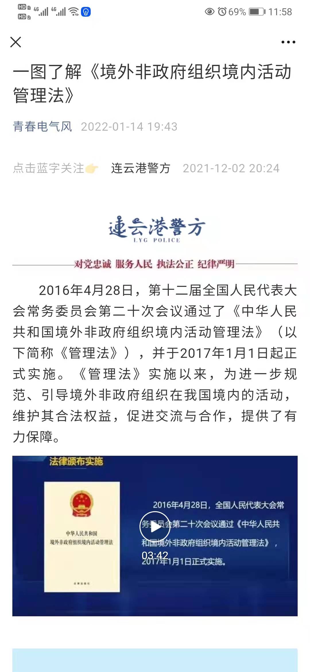 1月15日组织全院教师集中观看关于《境外非政府组织境内活动管理法》的解读短视频(视频网址:https://v.qq.com/x/page/p0517epcb7c.html)。帮助全院教师了解学习该管理法的立法目的、意义与具体内涵。