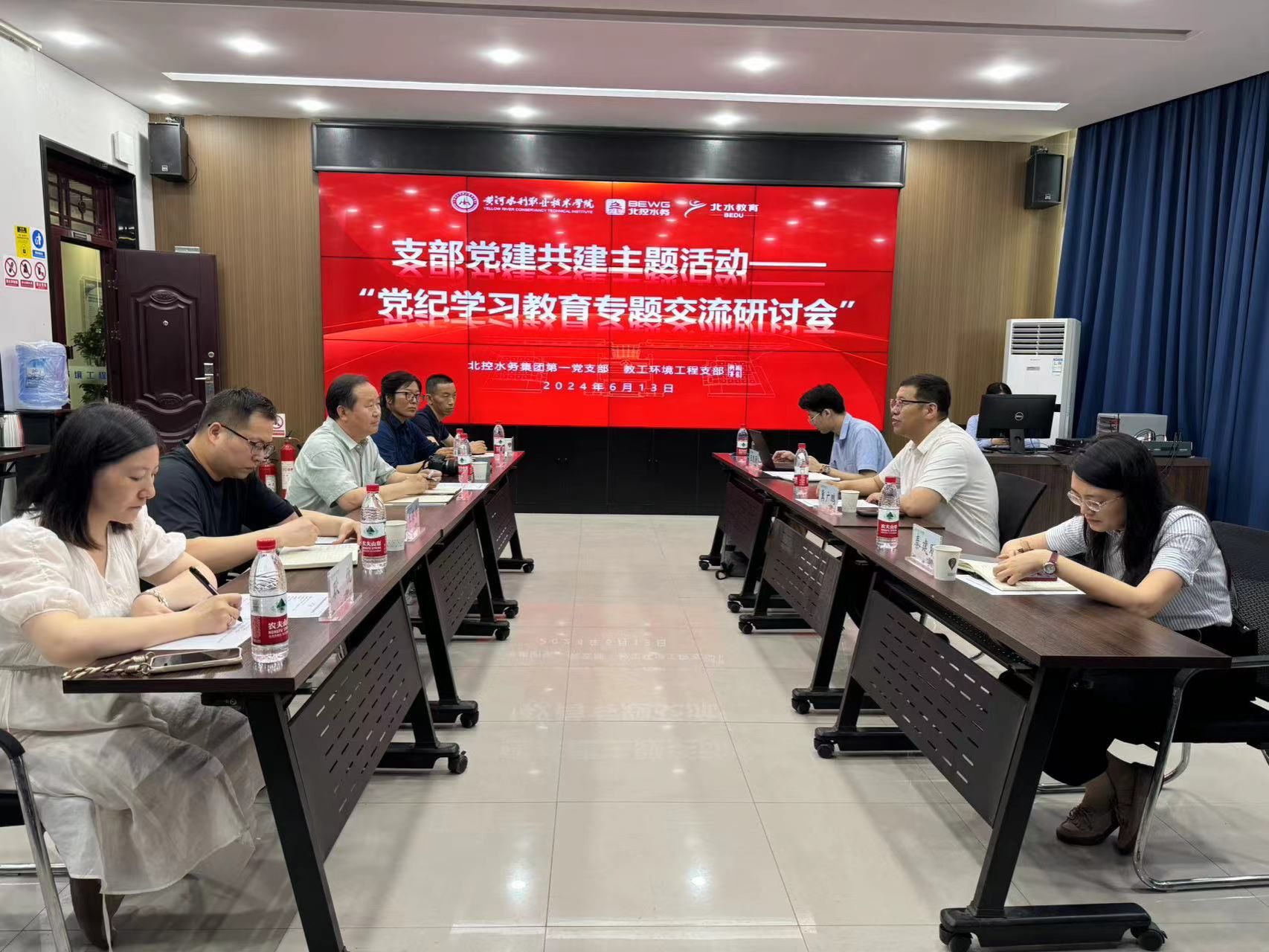 为进一步落实党纪学习教育,提升基层党组织建设质量和水平,613午,教工环境工程支部北控水务集团第一党支部八号实训楼SY82021举行“党纪学习教育专题交流研讨会”党建共建活动。北控水务集团北水教育总经理、北控水务集团第一党支部书记冀广鹏,产教融合中心副总经理秦建明及产教融合专员王思源参加研讨,环境工程学院副院长教工支部书记姚新鼎、副院长王海烽及教工支部党员代表参加会议。会议由环姚新鼎主持。