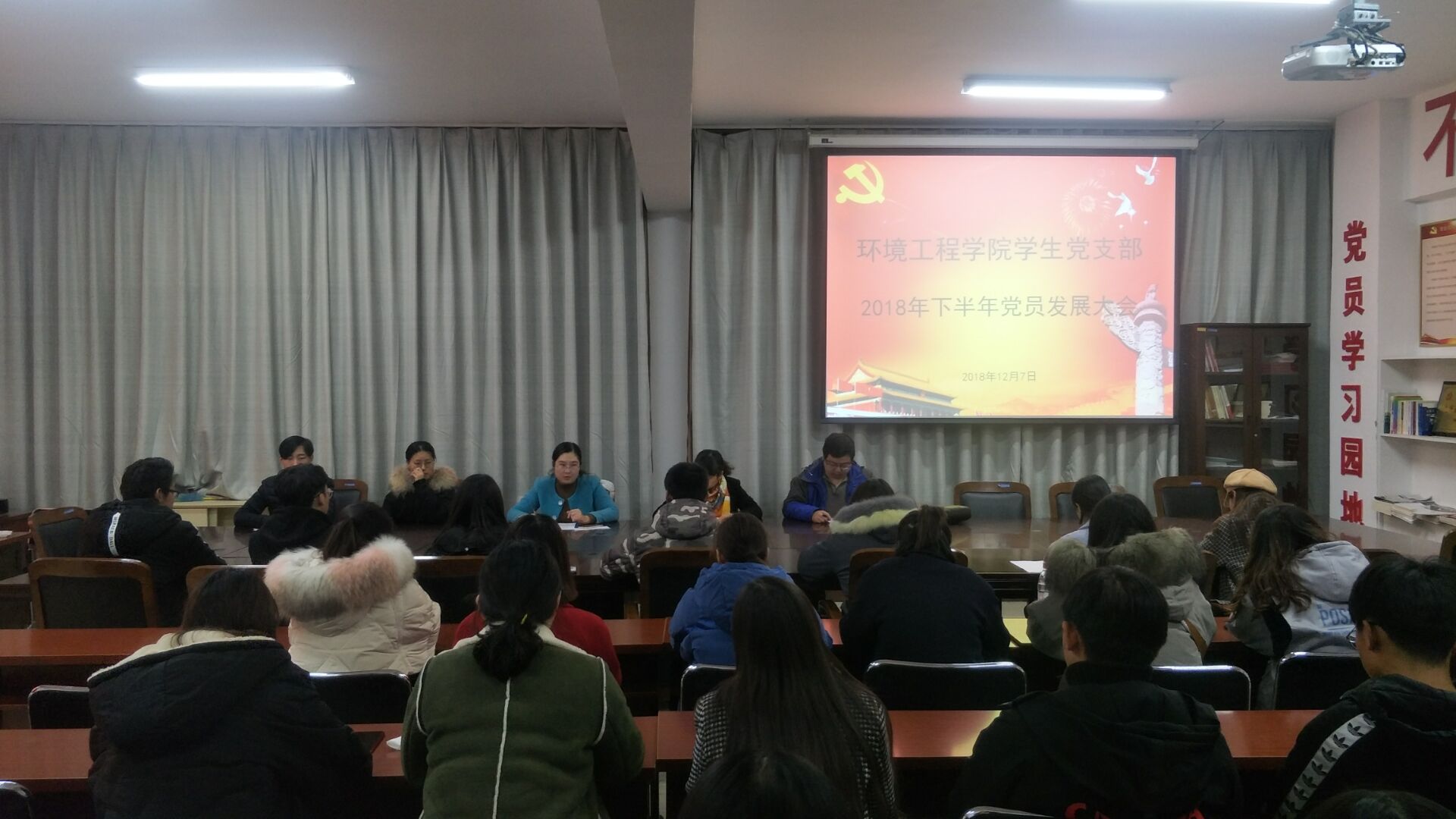 2018年12月7日下午,环境工程学院学生党支部在系会议室SY5405召开了2018年下半年学生党支部党员发展大会,院党总支副书记曾宝亭出席本次会议,大会由学生党支部书记武琳琳主持。