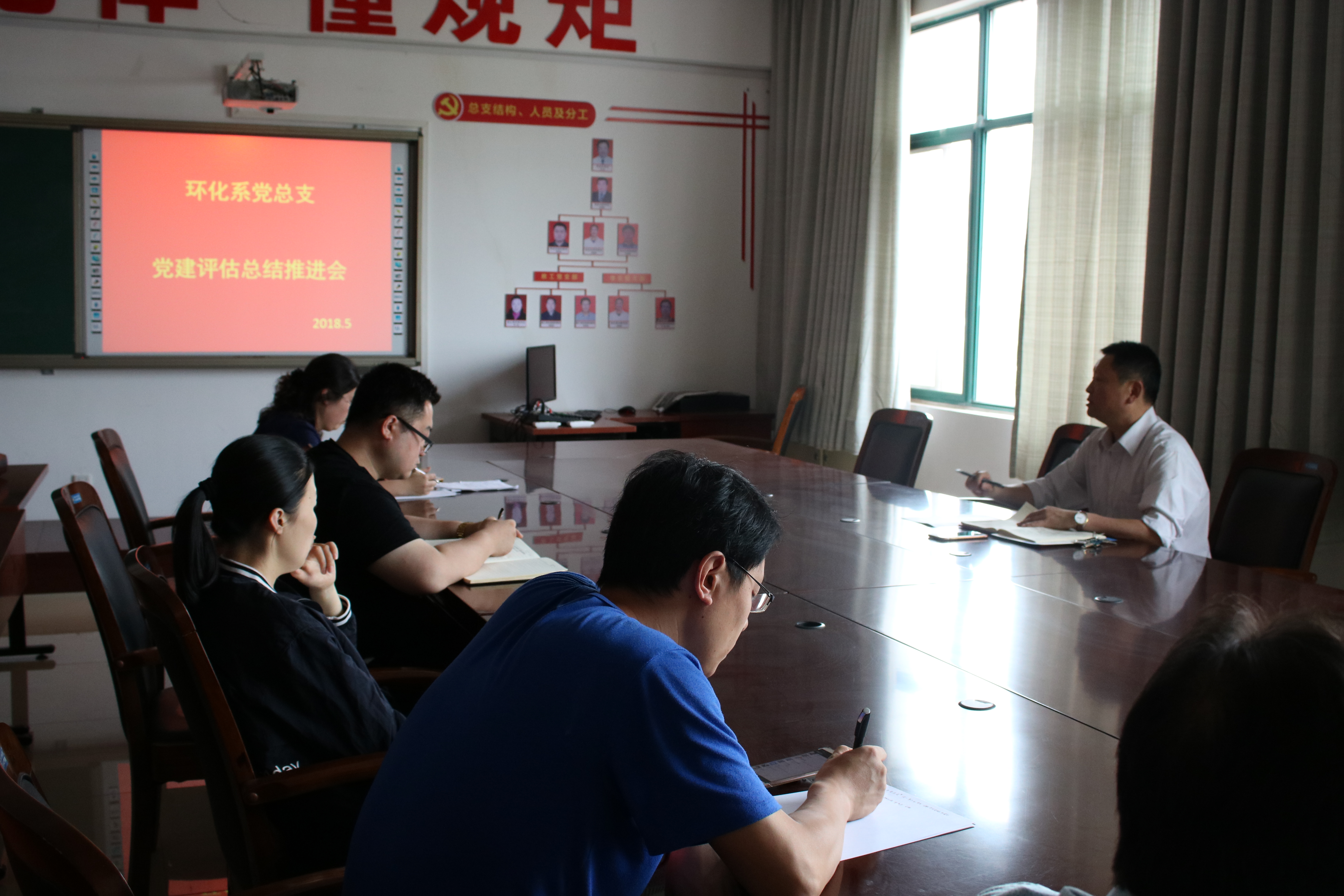5月30日下午15:00,环境与化学工程系在系会议室召开基层党建评估总结推进会,系党总支书记刘岩主持会议,党总支委员、支部委员等6人参加会议。