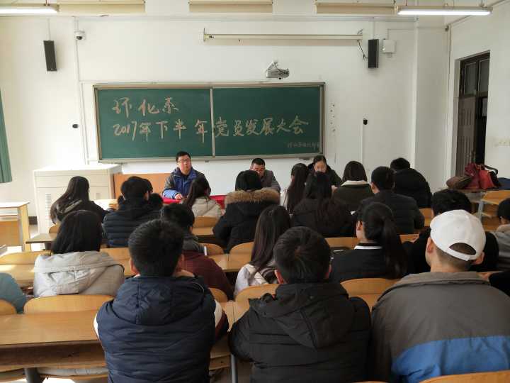 2017年11月30日中午,环化系学生党支部在JX5209教室召开了2017年下半年学生党支部党员发展大会,系党总支副书记王振强出席本次会议,大会由学生党支部书记武琳琳出主持。