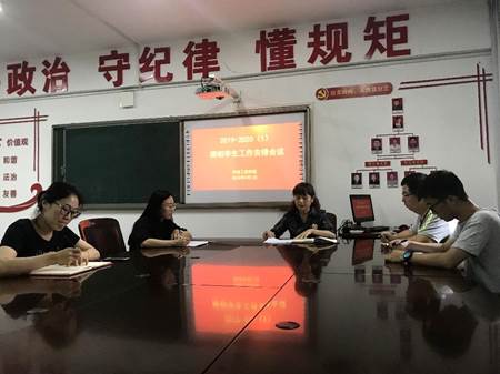 9月1日17:00时,环境工程学院在院会议室召开2019-2020(1)新学期学生工作会议,安排和部署期初学生工作。党总支副书记曾宝亭、分团委书记孙莉莉、辅导员王恺、马琳娜、王维宇参加了会议。