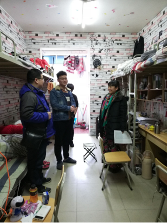 新学期开学伊始,2019年2月24日下午4:30环境工程学院党总支副书记曾宝亭、分团委书记武琳琳、16级辅导员王恺和18级辅导员马琳娜一行,深入到学生宿舍看望慰问返校学生,了解学生的思想动态,并且检查学生宿舍的卫生情况,进行安全隐患排查工作。