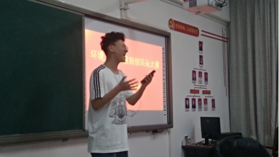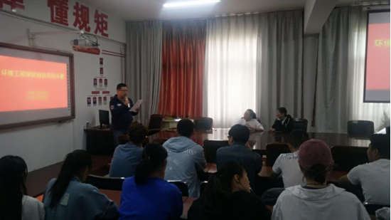 2019年5月6日中午13:00,环境工程学院在院会议室SY5405举行自信风采大赛。环境工程学院心理指导教师王恺、2018级辅导员马琳娜、院办教学秘书刘抒影、阳光心理联合会负责人高春喜担任评委。院心理指导教师王恺首先向大家阐述了举办本次比赛的目的和意义,然后他宣布比赛正式开始。环境工程学院2018级各班依次推出了精挑细选的节目。食安1801班张基坤、焦文晖同学的RAP表演技惊四座;环治1802班王泽昊同学的抒情歌曲暖人心窝;材料1801班李国旗、高士杰同学的诗朗诵饱含深情;环工1801班陈斌阳同学的手碟表演让人印象深刻;环工1802班的黄奕轲同学的英文歌也不逞多让。最后,来自食安1701班的李睿杰同学用一首《追梦赤子心》为大赛画上了一个圆满的句号。