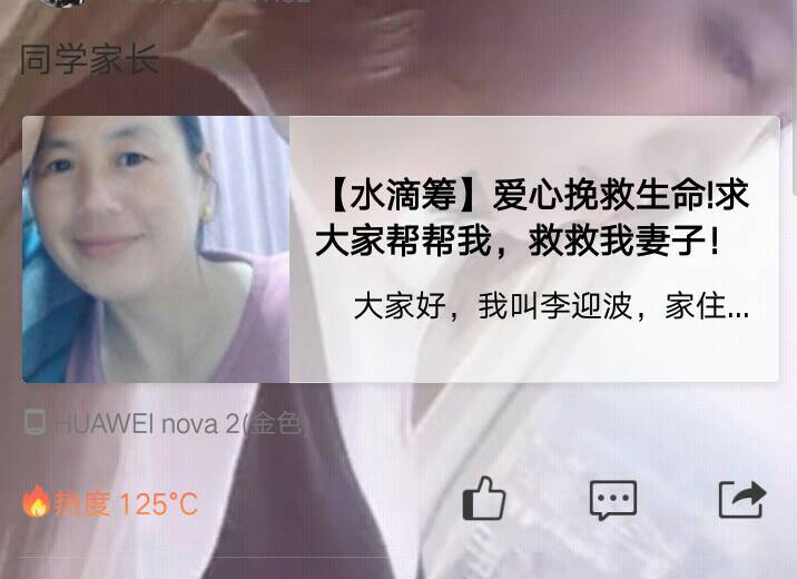 目前,“水滴筹”还在继续,人们的爱心还在不停的延续。真心的希望李同学的家人早日康复,健康美满!