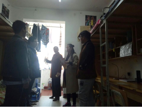 3月13日上午,环化系分团委书记武琳琳、全体辅导员深入学生宿舍7号、15号楼,对学生宿舍卫生、安全用电和火险隐患情况进行全面的检查,重点督促学生及时清理室内垃圾,清理阳台、卫生间等宿舍卫生死角,严禁在寝室吸烟和使用明火。