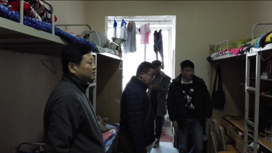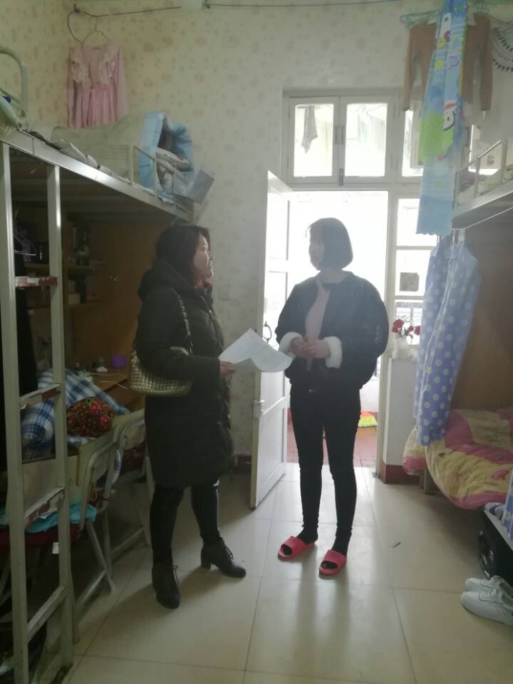 新学期开学伊始,2月12日下午四点,环境与化学工程系党总支书记刘岩、副书记王振强、分团委书记武琳琳、15级辅导员马金菊和16级辅导员王恺一行,深入到学生宿舍看望慰问返校学生,了解学生的思想动态,并且检查学生宿舍的卫生情况,进行安全隐患排查工作。