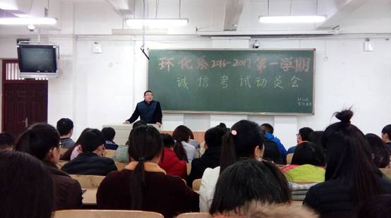 会上,张尧旺副主任首先宣读了学校对于考试纪律的规定,特别强调了对学生考试违纪的处理制度。王振强副书记告诫同学们考试违纪作弊的严重后果,并结合实例为大家细致的分析了诚信考试的必要性和重要性,同时提醒同学们在考前和考中所应注意的事项。然后,刘岩书记向同学们阐释了诚实守信是一种责任,也是一种声誉,更是当代大学生实现人生价值的重要一环,强调了社会主义核心价值观中对个人层面要求,特别指出诚信为做人之根本,要求同学们争做文明考生。最后,朱惠斌副主任指出,考风考纪是学风建设的重要内容,学院和本系严肃考风态度坚决,打击违纪措施严明,要求全体学生一定要打消考场作弊的侥幸心理,杜绝作弊现象,诚信迎考,特别要求广大学生干部要以身作则,树立榜样。会后,同学们纷纷表示将从自身做起,严于律己,诚信考试,交出一份合格的诚信答卷,用诚实和自尊收获信誉,用勤奋和努力收获成功。