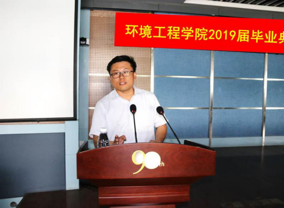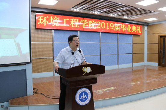 6月4日下午16:30,环境工程学院2019届毕业典礼在学术报告厅SY3301隆重举行。2019届全体毕业生汇聚于此,共同见证和分享一生中极其庄严而神圣的时刻——毕业盛典。环境工程学院党总支书记王国英、副院长张尧旺、党总支副书记曾宝亭、副院长王振伟,以及专业课教师代表出席典礼,毕业典礼由2016级辅导员王恺主持。