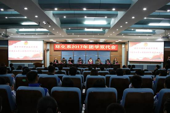 2017年12月21日中午13:30,环境与化学工程系2017年团学双代会在水利报告厅隆重召开,校团委副书记范龙、学生处副处长霍卫红、系党总支书记刘岩、副主任朱惠斌、副书记王振强、副主任张尧旺、艺术系分团委书记赵巍、系分团委书记武琳琳、行政办主任李孝坤、部分专业教研室主任、各年级辅导员、校学生会主席马明明出席大会。参加会议的还有各班团支部和学生组织选举推荐的80名正式代表和12名列席代表。