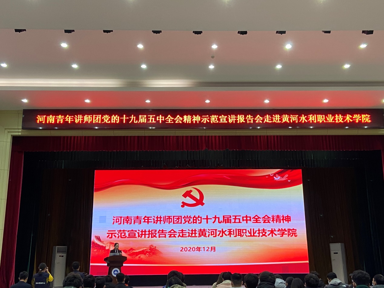 为深入学习贯彻党的十九届五中全会精神,12月8日下午,团省委组织河南青年讲师团在我校大学生活动中心举办“党的十九届五中全会精神”示范宣讲报告会。我院分团委书记孙莉莉老师带领优秀团员代表参加现场聆听,报告会内容丰富,教育意义深刻。