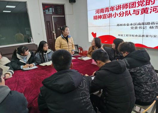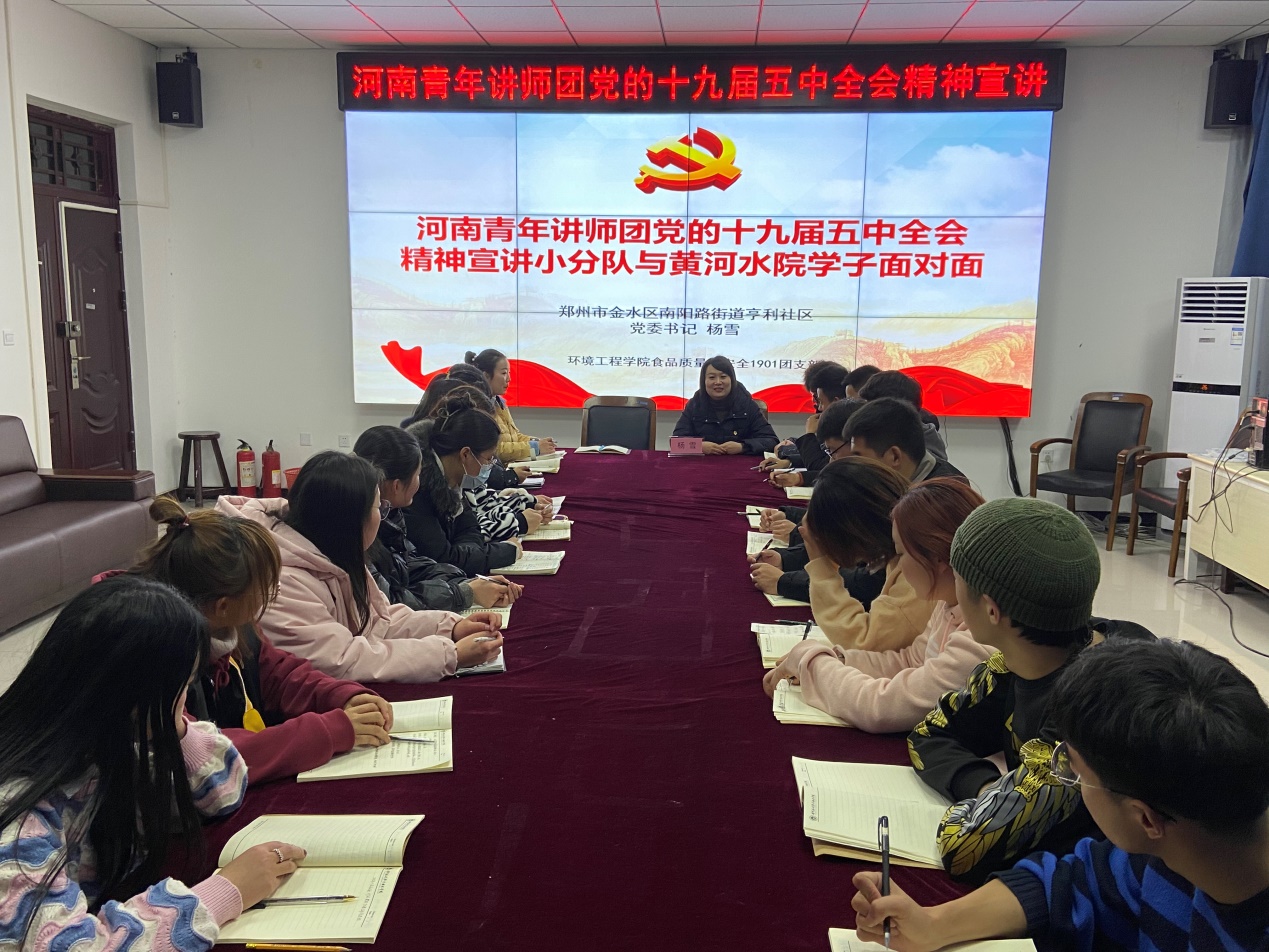 宣讲会后,讲师团成员——郑州市金水区南阳路街道亨利社区党委书记杨雪深入我院食品质量与安全1901团支部,与团员青年进行面对面的交流并为学生深入解读党的十九届五中全会精神。