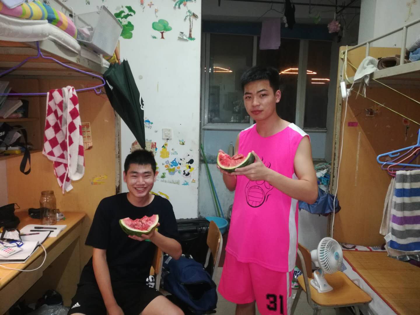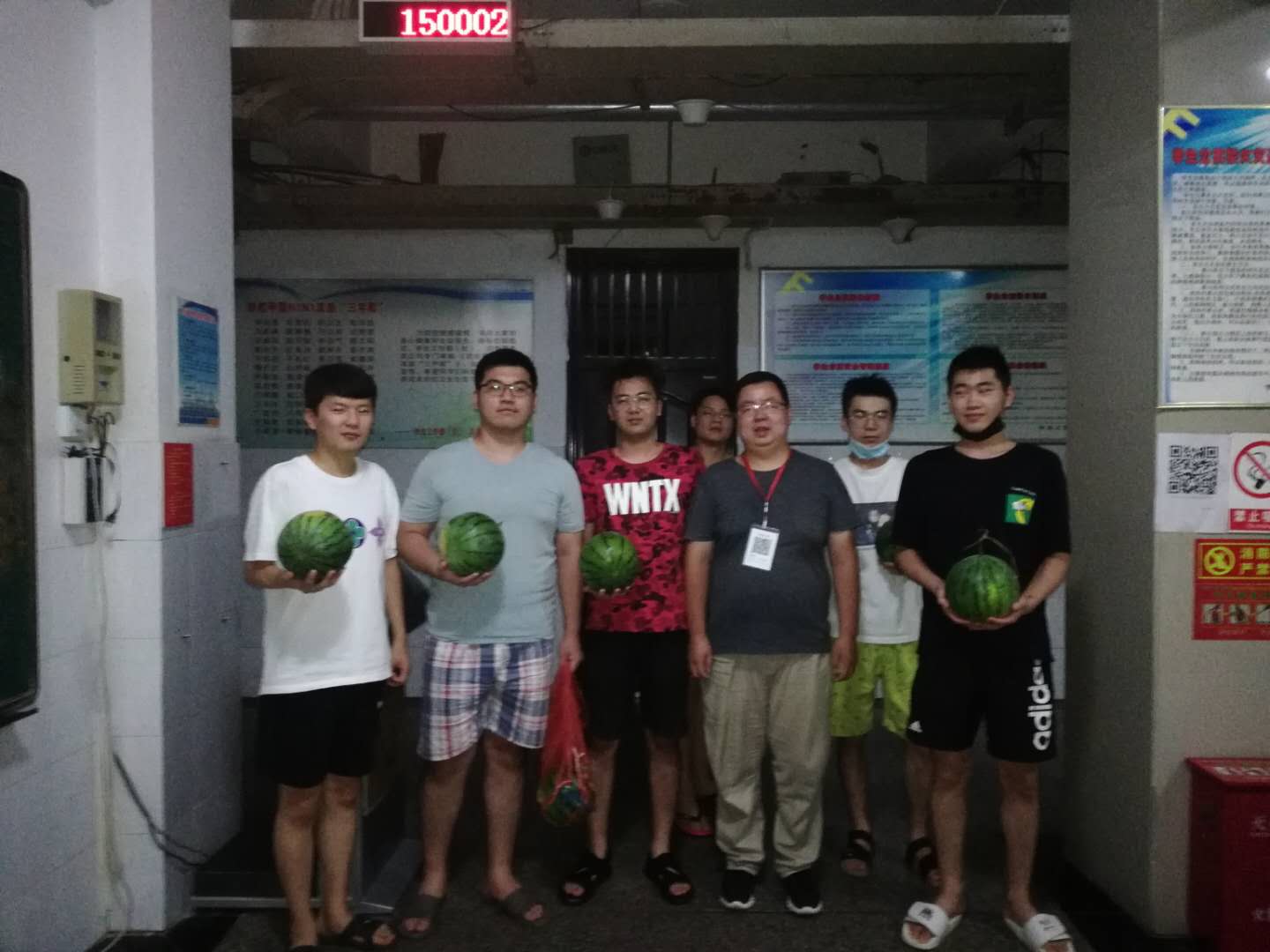 当天下午,王老师积极联系超市为环境工程学院72位考生购买了西瓜。因为疫情原因,超市送货员只能把货送到校门口,王老师只能开着电动车将沉重的西瓜一次次地送到学生宿舍楼下,当学生们下楼抱着沉甸甸的西瓜准备上楼时候,脸上洋溢的是幸福的笑容。晚上,同学们在宿舍里品尝着辅导员送来的西瓜,纷纷表示能做环境工程学院的学子简直太幸福了,他们一定会努力考出考成绩,来回报学院老师对他们的关心和爱戴。