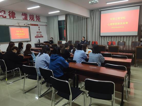 2022年4月11日晚上19:30,环境工程学院在院会议室SY5405举行心理情景剧大赛选拔赛。院心理指导教师王恺老师、院阳光心理联合会负责人韩智超、往届优秀演员田帅担任比赛评委。由2020级和2021级各班选送的八组心理情景剧依次表演,通过演员们精彩的演绎表现了大学生遇到的不同心理状况以及如何克服心理问题、破茧成蝶。经过激烈的比拼,《救赎》、《男孩》、《告别沉默》等三个作品脱颖而出,将代表学院参加校心理情景剧大赛。