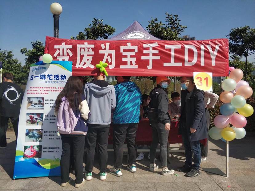环境工程学院分团委策划的《环保材料手工制作——口红制作》、《超声波仪器体验——超声仪洗眼镜》、《水质快速检测》趣味专业技能展示活动,以及《变废为宝手工DIY》《猜猜我是谁》《企鹅漫步》《手忙脚乱》七个活动项目,学院领导班子和全体学生一起参与其中,感受劳动的价值,度过了一个内容充实、寓教于乐的五一假期。