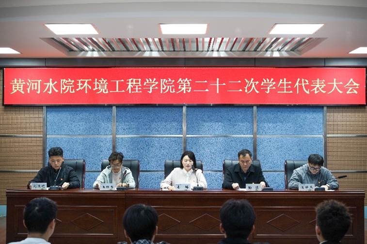 在青春的激昂旋律中,为更好地服务同学成长,凝聚青年力量,环境工程学院第二十二次学生代表大会于3月26日下午3点在三号实训楼水利报告厅隆重举行,校团委副书记姜璐、环境工程学院党总支副书记陶攀、分团委书记王维宇及学生代表参加此次大会。