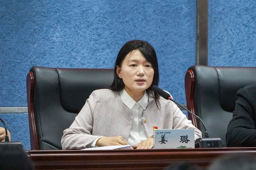 校团委副书记姜璐对大会的成功召开表示祝贺,对学院学生会组织对过去一年学生会的工作表示认可,在助力学生全面发展方面成效显著。她高度赞扬环境工程学院学生会在服务青年成长、推动校园文化建设、践行生态文明理念中的突出贡献,并围绕新时代青年使命提出三点期望:一是坚定理想信念,筑牢思想根基,号召青年学子深入学习贯彻党的二十大精神,将个人成长融入国家发展大局;二是深化改革创新,提升服务效能,勉励学生会持续优化工作机制,倾听同学心声,打造“有温度、有深度”的学生组织;三是勇担环保使命,彰显青春作为,鼓励学院青年立足专业特色,在双碳目标、污染防治等领域积极实践,争做美丽中国建设的生力军。