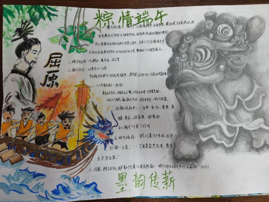 此次手抄报大赛紧密围绕端午节核心,鼓励学生从“历史溯源”、“民俗风情”、“文化创新”和“家国情怀”等多个维度进行创作。自5月25日启动以来,吸引了众多学生的积极参与。参赛者们以A3纸张为画卷,精心构思版面,巧妙融合手绘插图与文字内容(原创感悟或引用经典诗词),用色彩和笔墨生动描绘了端午节的起源传说、丰富多彩的习俗(如包粽子、赛龙舟、佩香囊),展现了新时代青年对传统文化的创新诠释,更深刻表达了根植于端午节的爱国情怀与民族凝聚力。
