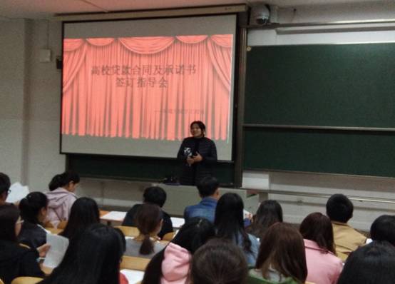 会上,马金菊老师针对大一年级学生详细介绍了国家及学院的各种资助政策,目前我院实行的资助政策包括了“绿色通道”、奖学金、助学金等,同学们进入到大学以后,可以享受到多种资助,解决了同学们的后顾之忧,可以安心的在学校生活和学习。王老师详细介绍了学院家庭经济困难认定政策及程序、贷款审批表填写注意事项、贷款合同签订、贷款发放及贷后还款的流程,如何保持良好的诚信记录等。通过王老师的讲解,同学们对国家及我院的资助政策有了充分的了解,特别是家庭困难的学生,对大学的生活和学习更是充满的希望和信心。最后三个年级230名贷款学生顺利签订了贷款合同及提前还款承诺书,保证了我系2017年贷款工作和提前还款工作顺利进行。