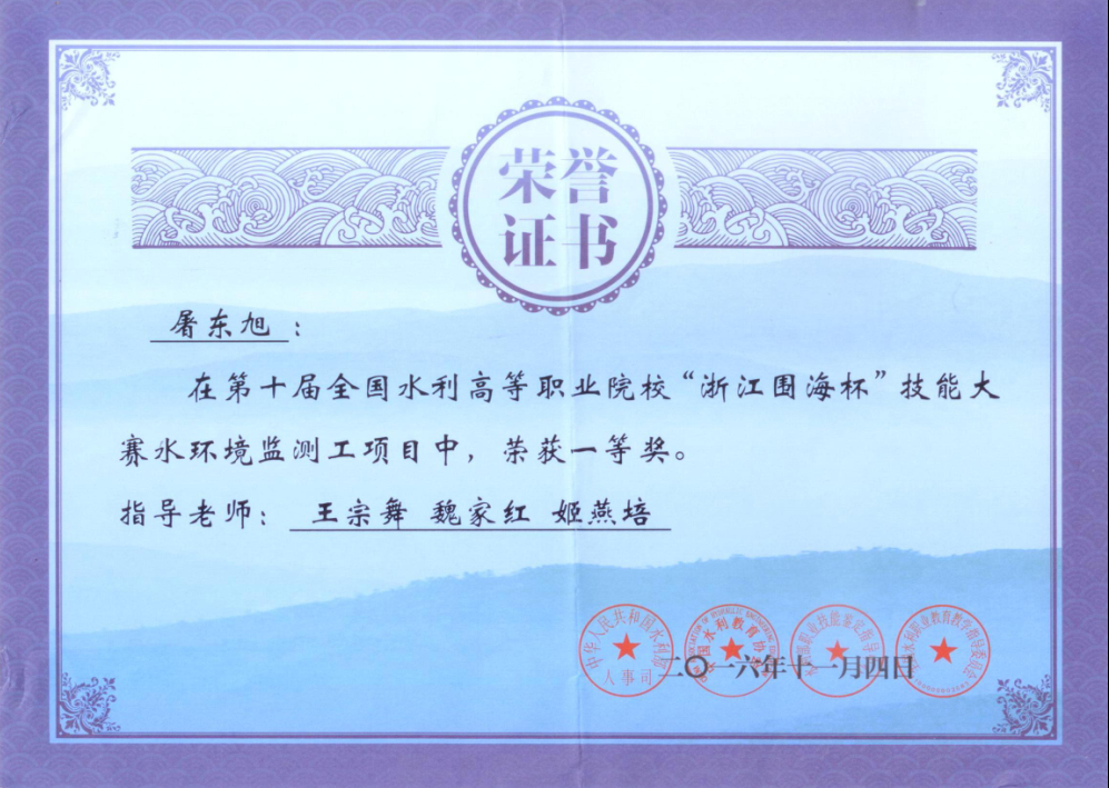 他以知识为阶梯,攀上了化学工程技术的顶峰。他是环境监测与治理技术专业的中坚力量,不但有实际操作的经验,还有成熟的理论武装。他无论是在生活上、学习上还是工作上,都是同学们中的佼佼者,不是因为成绩而优秀,而是因为优秀才有成绩。他就是“浙江围海杯”水环境监测工项目一等奖得主——环境监测与治理技术1401班屠东旭!
