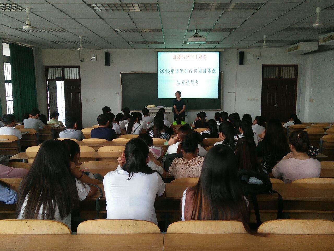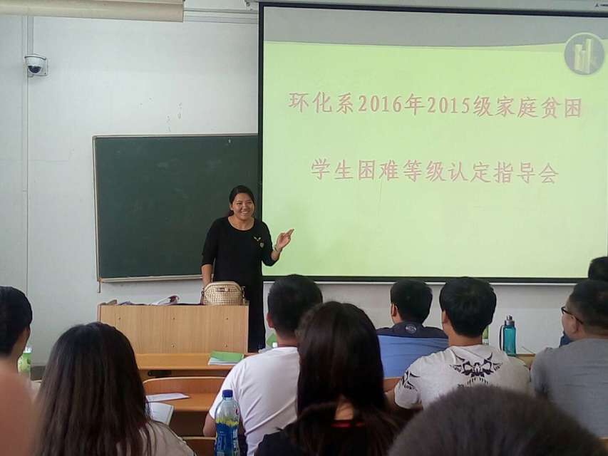 2016年9月9日下午,环化系在JX6203召开2016年困难等级认定工作指导会。2014级辅导员武琳琳、系资助专员、2015级辅导员马金菊、资助助理罗慧宁参加会议。会上,武老师详细介绍了学院家庭经济困难认定政策及程序,贷款审批表填写注意事项及还款的流程,如何保持良好的诚信记录等。通过马老师、武老师的讲解,学生们对国家及我院的资助政策有了充分的了解,特别是家庭困难的学生,对大学的生活和学习更是充满的希望和信心。保证了我系困难等级认定工作的顺利开展,为奖助学金评定、资助工作打下良好的基础。