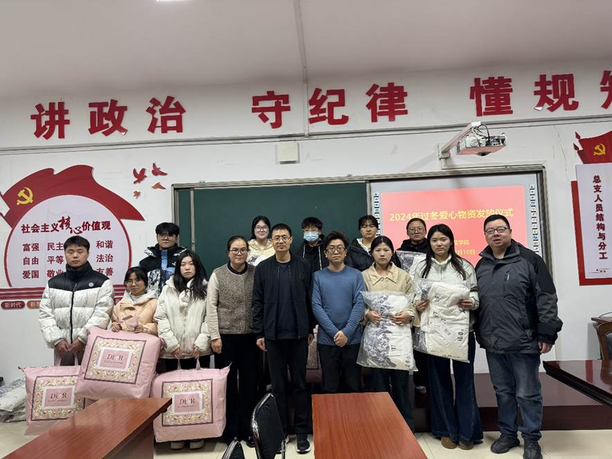 为了把党和国家以及学校对家庭经济困难学生的关怀落到实处,确保家庭经济困难学生能够度过一个温暖的冬天,环境工程学院于2024年12月10日开展2024年冬季学生暖冬物资发放仪式,环境工程学院党总支书记冯涛,辅导员王恺、贾俊伟、王维宇参加了本次发放仪式。