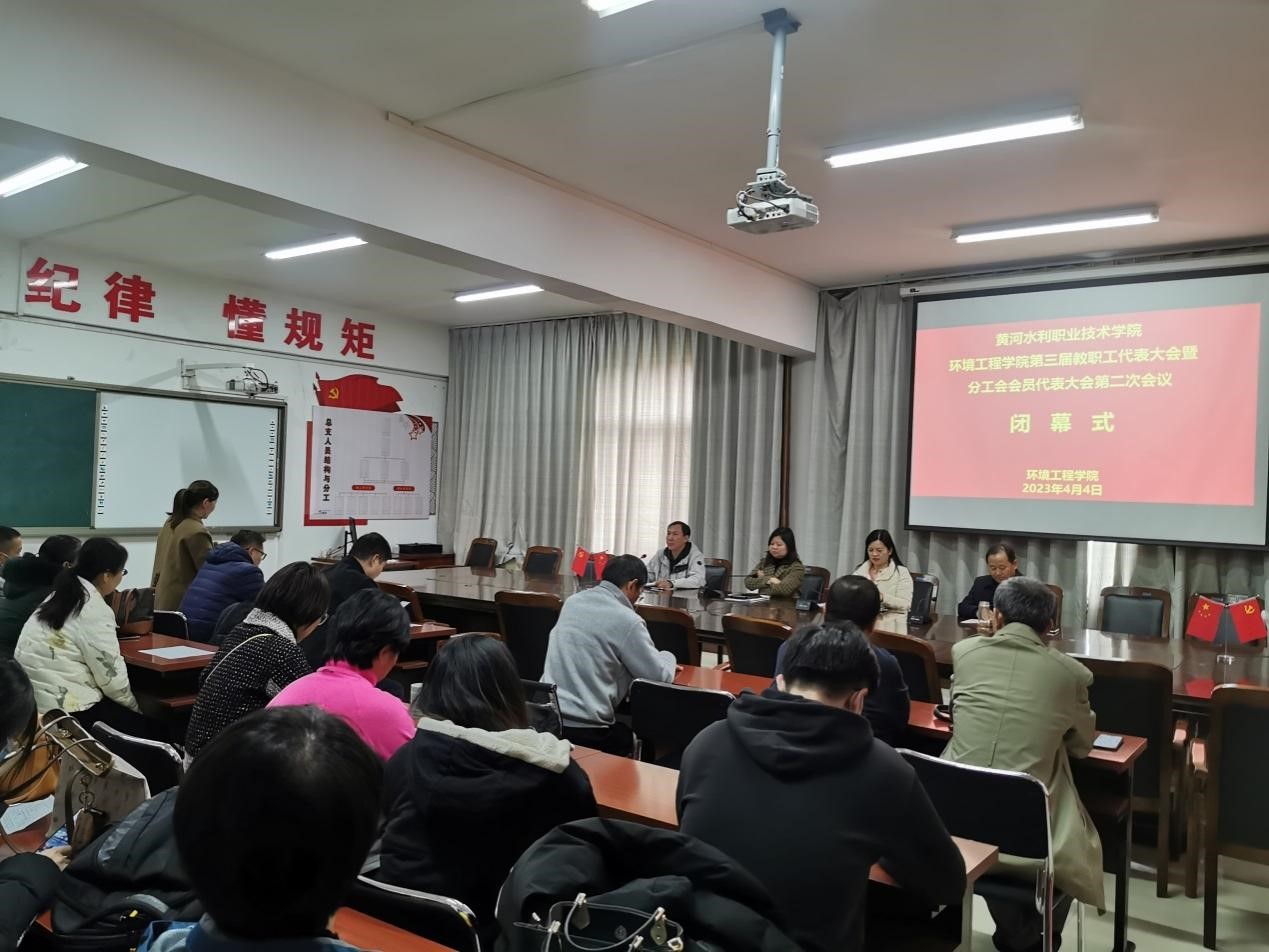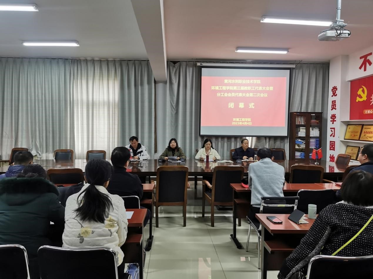 环境工程学院第三届教职工代表大会暨分工会会员代表大会第二次会议于4月4日在实训楼5405胜利召开,环境工程学院全体教职工齐聚一堂,共谋学院发展大计。院领导高琼、冯峰、陶攀、姚新鼎出席,院党总支副书记、分工会主席陶攀主持会议。