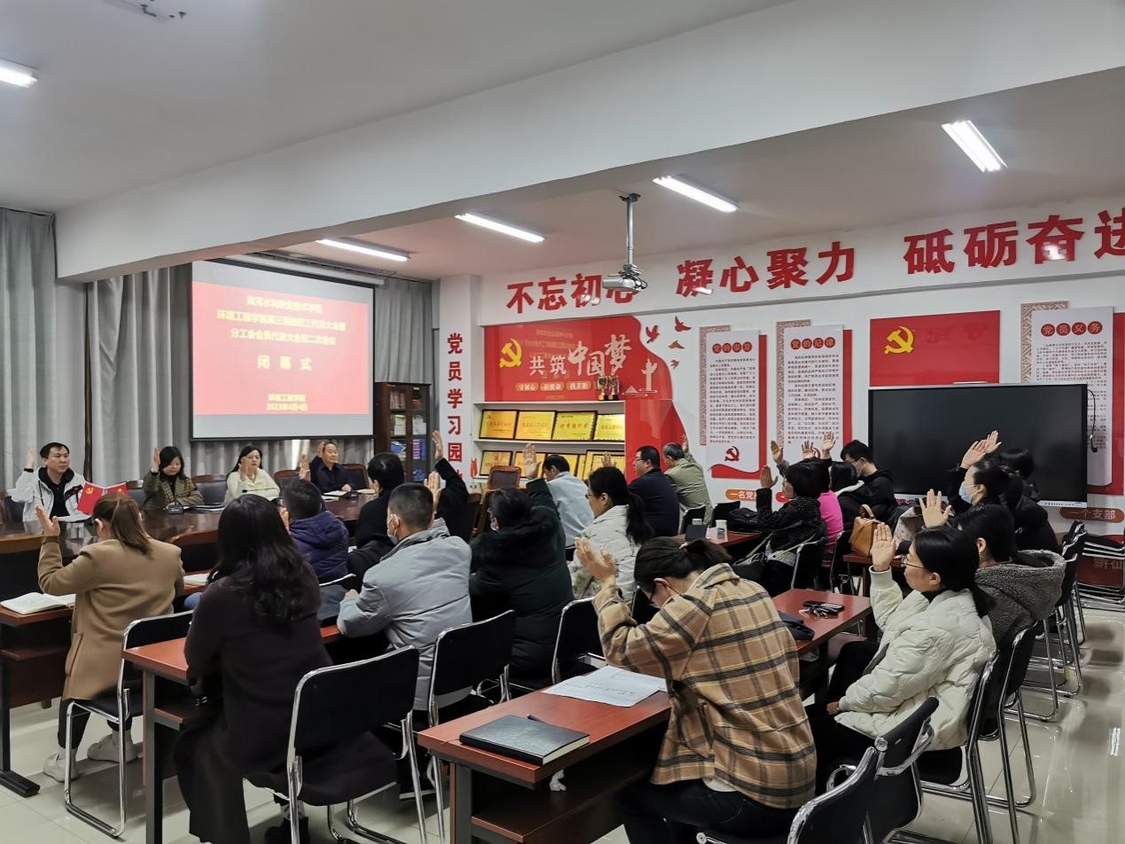 分工会主席陶攀作《环境工程学院分工会2022年工作报告》,向大会报告了2022年工会工作总结和2023年工作计划。报告指出,环境工程学院分工会将始终坚持党对工会工作的领导,服务学院工作大局,积极发挥工会的桥梁纽带作用,助力学院高质量发展。