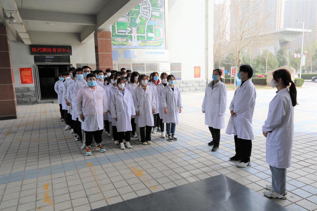 环境监测技术2001、02班学生听从指挥进行应急演练