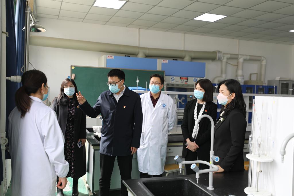 党委副书记、校长胡昊一行查看喷淋和洗眼器装置