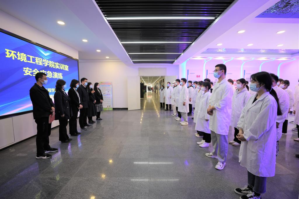 为深入贯彻《教育部关于加强高校实验室安全工作的意见》等文件精神,进一步增强我校师生对突发事故的应急反应能力,提高师生对危化品使用及火灾扑救等工作的组织和处理能力,环境工程学院于2022年3月14日下午,在8号实训楼开展实训室安全应急演练工作。校党委副书记、校长胡昊,副校长焦爱萍现场指导应急演练工作,教务处、教育教学督导室及环境工程学院负责人,环境工程学院实训中心负责人、授课教师、环境监测技术2001、02班61名同学等参加了演练工作。