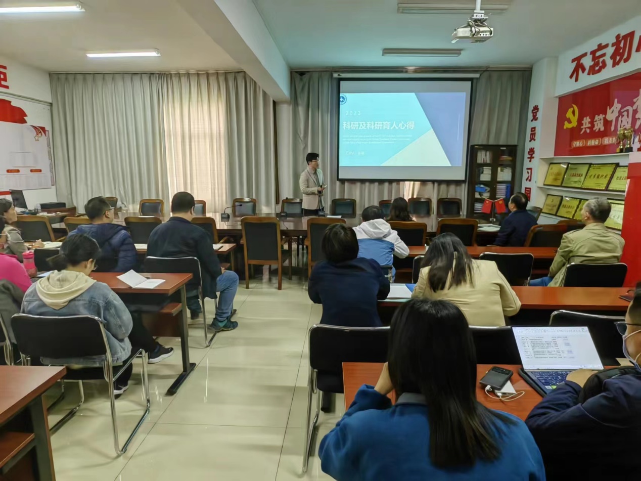 活动以陈星博士和王宗舞博士科研成果分享会的形式开展。其中陈星博士以发表高质量论文(影响因子为14.224,中科院一区TOP期刊)为出发点,讲述了其做科研的创新思路、实验方法、科研育人途径以及个人科研心得体会。王宗舞博士以个人应用研究方向、教学内容改革等方面为出发点,讲述了其科研探索方式、努力方向和科研创新建议等。两位博士均结合自身经历深刻阐述了一名科研工作者的自我提升历程,并将科研与日常教学、工作等深入融合,培养出一批具有科研精神、创新精神、担当精神的高素质人才,是我院在党建业务工作“双融合、双促进、双提升”方面的具体体现。活动过程中全体教师与两位博士积极互动,提出在科研、教学、学习等方面遇到的瓶颈,两位博士均耐心给出意见和建议。