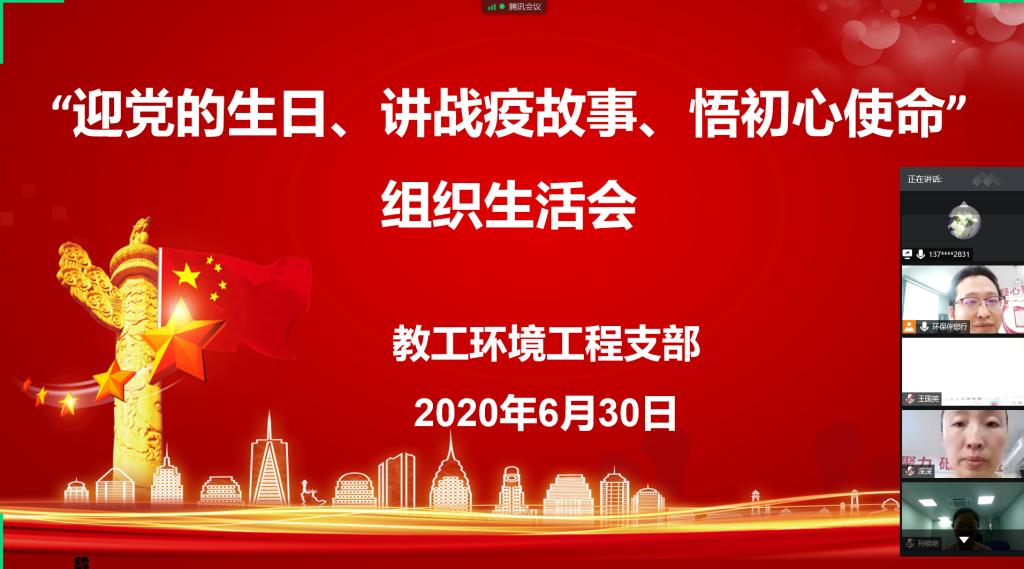 2020年6月30日15:00,环境工程学院教工环境工程支部召开“迎党的生日、讲战疫故事、悟初心使命”组织生活会,会议由教工支部副书记申森主持,全体教工党员参加了此次生活会。