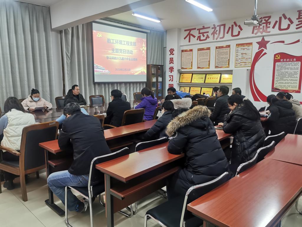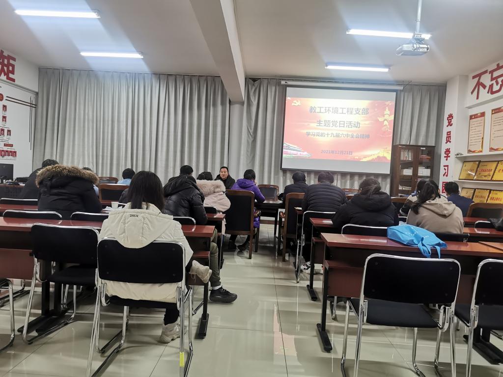 1221日,教工环境工程支部召开学习党的十九届六中全会精神主题党日活动。全体教工党员参加了此次活动,该活动由教工支部书记王振伟主持。