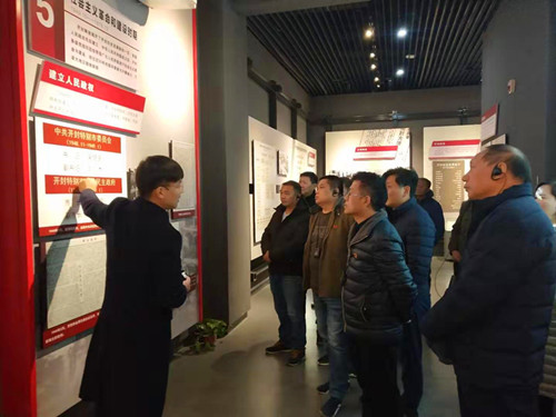 全体党员依次参观了以“牢记嘱托,践行嘱托”为主线的习近平总书记视察开封厅,全面展示习近平总书记3次视察开封的谆谆嘱托和以实际行动践行嘱托的发展成就;以“守住钙源,深学细照”为中心的焦裕禄在开封厅,全面展示焦裕禄在开封工作生活8年的感人事迹和在焦裕禄精神感召下涌现出的焦裕禄式好党员好干部;以“铭记历史,开创未来”为统领的开封红色记忆厅,全面展示开封党史、启迪党员干部奋力开启新时代全面建设社会主义现代化国家新征程;以“严明纪律,严守规矩”为根本的廉政教育厅,全面展示中央有关要求和正反两方面典型事例,引导党员干部永葆清正廉洁本色。在讲解员的详细讲解下,透过一幅幅珍贵的历史图片、一个个鲜活生动的事例,对习近平总书记视察开封时的谆谆嘱托、焦裕禄在开封工作生活的感人事迹等进行了学习和感悟;了解了开封党史、党建发展历程;在廉政教育厅,通过正反两方面典型事例,党员们的心里受到震撼和洗涤。参观过程中,党员同志边学边议,每到一处,大家都凝神注视,认真聆听讲解员讲解,不时驻足观看。最后来宣誓厅,进行宣誓仪式教育,并由党总支部青年委员冯向波领誓,大家举起右拳,面对党旗,重温了入党誓词,铿锵有力的誓言响彻大厅,这是大家对“不忘初心、牢记使命”的庄严承诺。宣誓后,大家在党旗下集体唱国歌,再次点燃满腔的爱国热血。