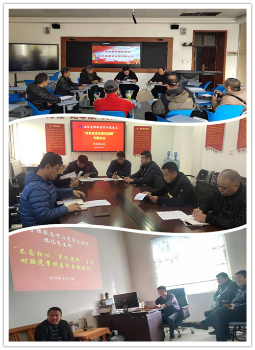 11月19日下午,后勤管理服务中心饮食服务支部、医务保健支部、维修绿化支部分别在四楼会议室、教学楼7212教室、物业办公室开展“不忘初心、牢记使命”主题教育对照党章党规找差距专题会议,各支部全体党员参加会议。