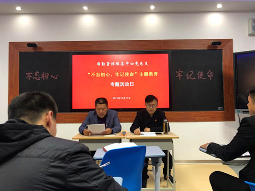 10月17日下午,后勤管理服务中心党总支利用整整一下午,在教学楼7212教室进行了内容丰富的“不忘初心、牢记使命”主题教育专题日活动,活动由主任、党总支副书记胡振江主持,后勤全体党员参加。