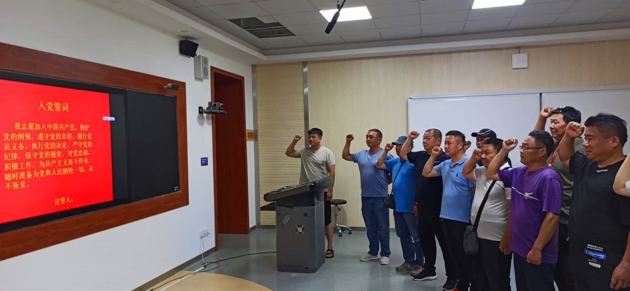 活动第一项,由支部书记梁冰带领党员重温入党誓词。