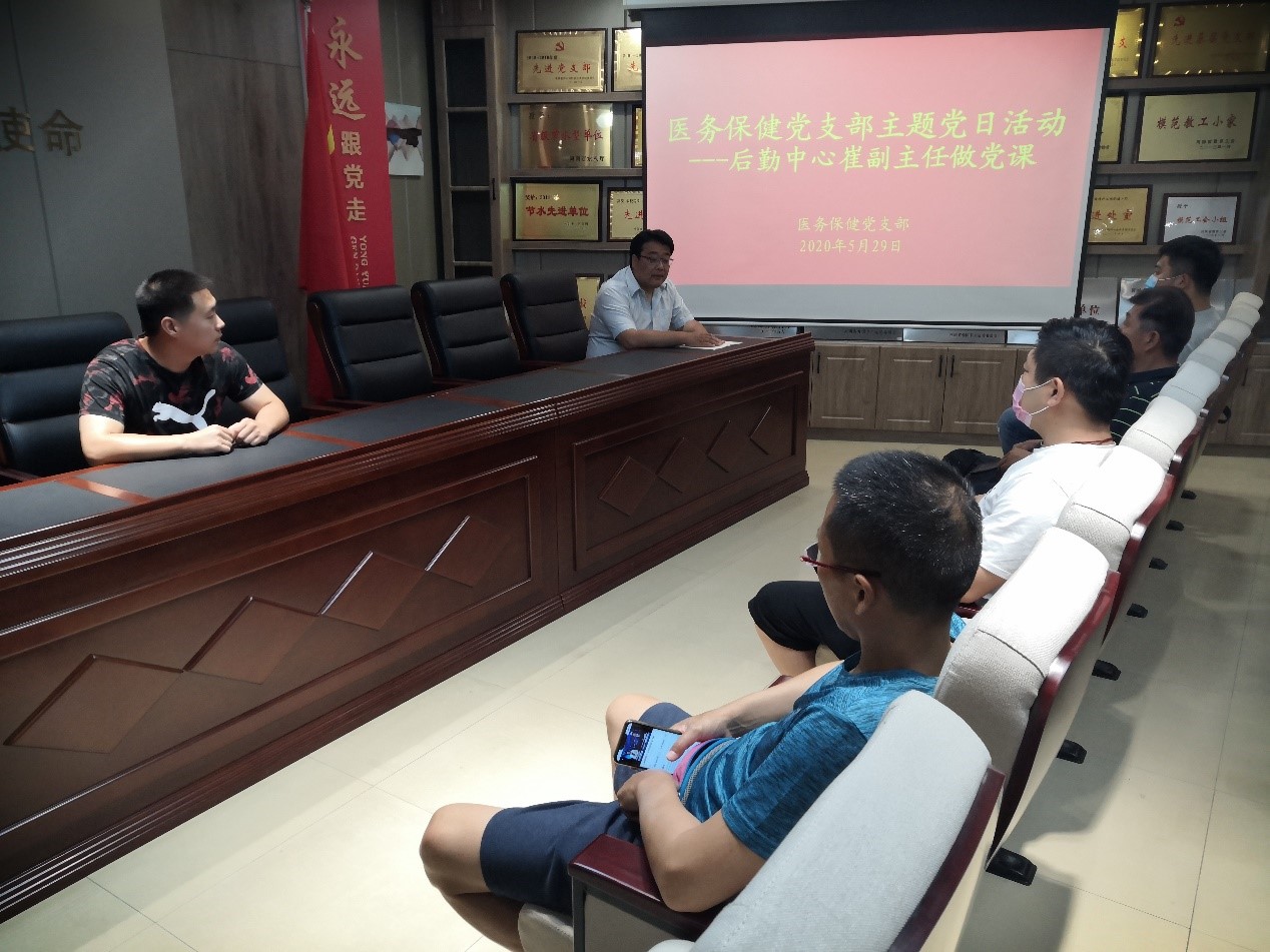 5月29日下午,后勤管理服务中心副主任崔嵩以“疫情对我国经济生活的影响”为题,在后勤会议室为医务保健支部党员上了一堂精彩的党课,医务保健党支部全体党员聆听了此次党课。