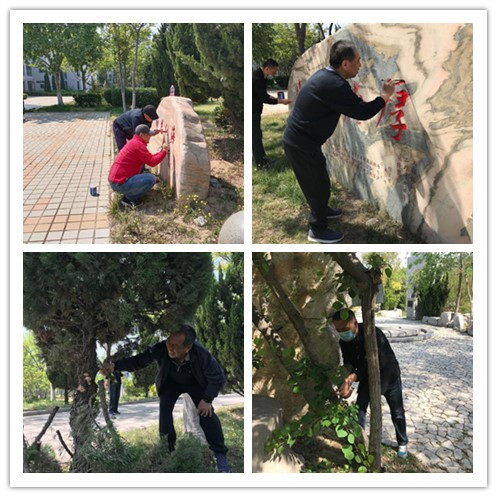 校园是我们共同的家,复学在即,在做好疫情防控工作的同时,为强化党员的集体意识、荣誉观念以及奉献精神,发挥党员的模范带头作用,项目管理支部组织全体党员开展美化校园活动,同志们各自发挥个人特长,有的修剪树枝、有的嫁接花木、有的清理杂草、有的描红景观石。大家各司其职、各得其乐,干的不亦乐乎。以实际行动为全体师生营造优美的校园环境,换来大家在疫情时期有一个学习工作的好心情,建设美丽和谐校园,后勤党员永远在行动。