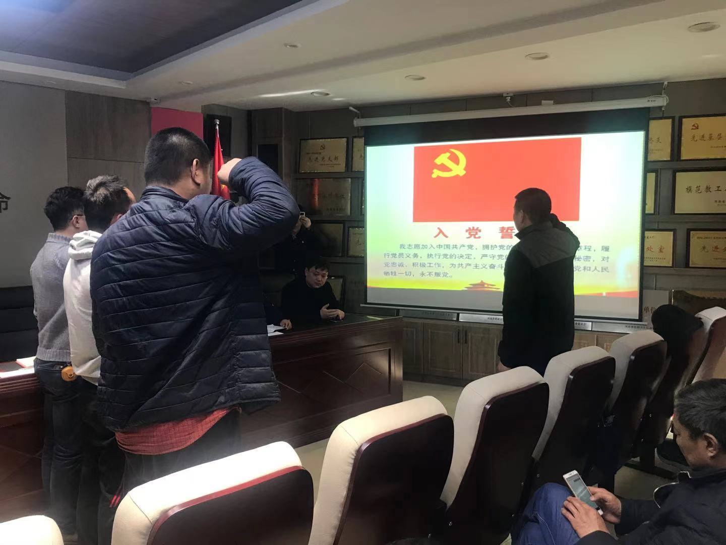 入党宣誓仪式在雄壮的《中华人民共和国国歌》声中拉开帷幕;韩景瑞宣读了我校党委组织部关于批准李翔、孙峰、巩子煜三名同志为中共预备党员的批复;两名支部书记为三名同志佩戴了党徽,并向他们赠送党章和学习书籍;三名预备党员面对党旗,在冯向波的领誓下进行集体宣誓;三名预备党员向党组织作了表态发言;三名预备党员的入党介绍人分别就三位党员思想政治、个人发展等方面进行点评及寄语;总支书记王建设做最后讲话,对三名预备党员提出了三点希望和三点要求:希望各支部继续高标准严要求培养三位同志;希望两个支部全体党员像以前一样关心爱护三名同志;希望三名同志继续严格要求自己,时刻铭记入党动机,做到思想入党,灵魂入党。要求大家永远铭记共产党人的初心和使命;要求大家谨记党纪国法,做遵纪守法的表率;要求大家勇担任务,勇往直前,在艰难困苦,集体荣誉面前,一马当先,率先垂范,发挥模范作用。入党宣誓大会在《国际歌》声中落下帷幕。