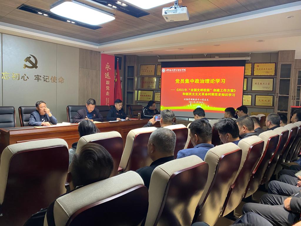 3月30日下午,后勤党总支在四楼党员之家组织党员进行集中政治理论学习,集中学习由总支书记王建设主持,后勤全体党员参加。
