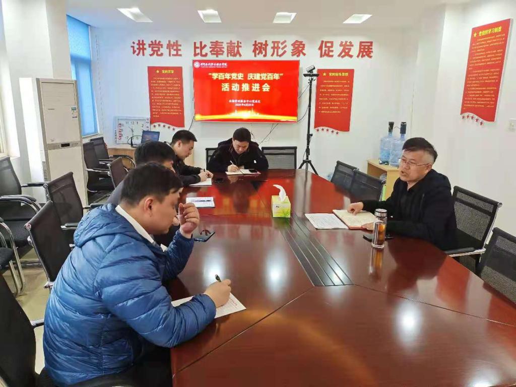 4月21日上午,后勤党总支组织召开“学百年党史 庆建党百年”活动推进会,会议由党总支书记王建设主持,总支办主任与支部书记参加会议。
