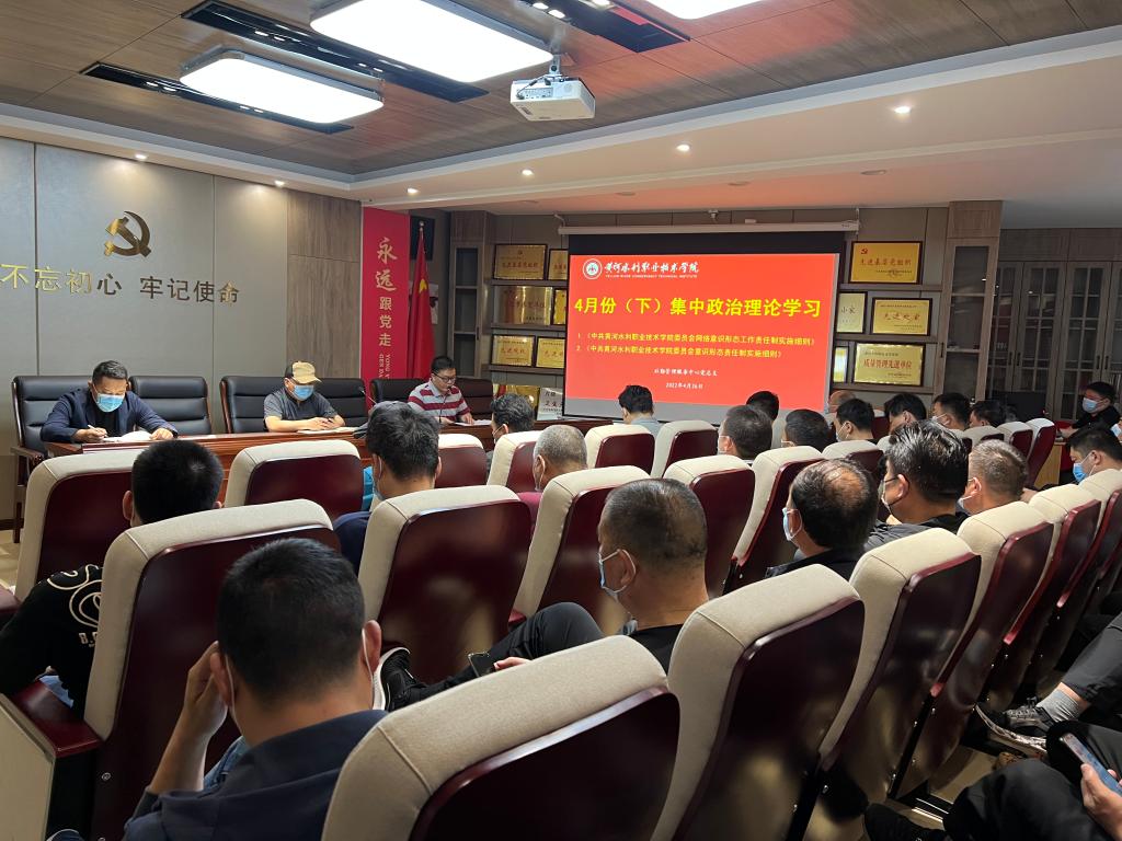 王忠伟带领大家学习了《中共黄河水利职业技术学院委员会网络意识形态工作责任制实施细则》、《黄河水院党委意识形态责任制实施细则》文件精神,对意识形态工作责任及责任追究方面进行了重点领学。