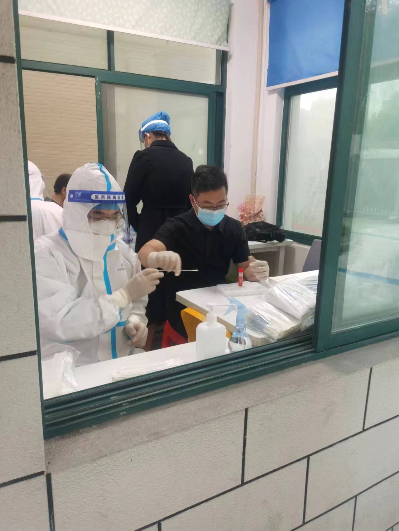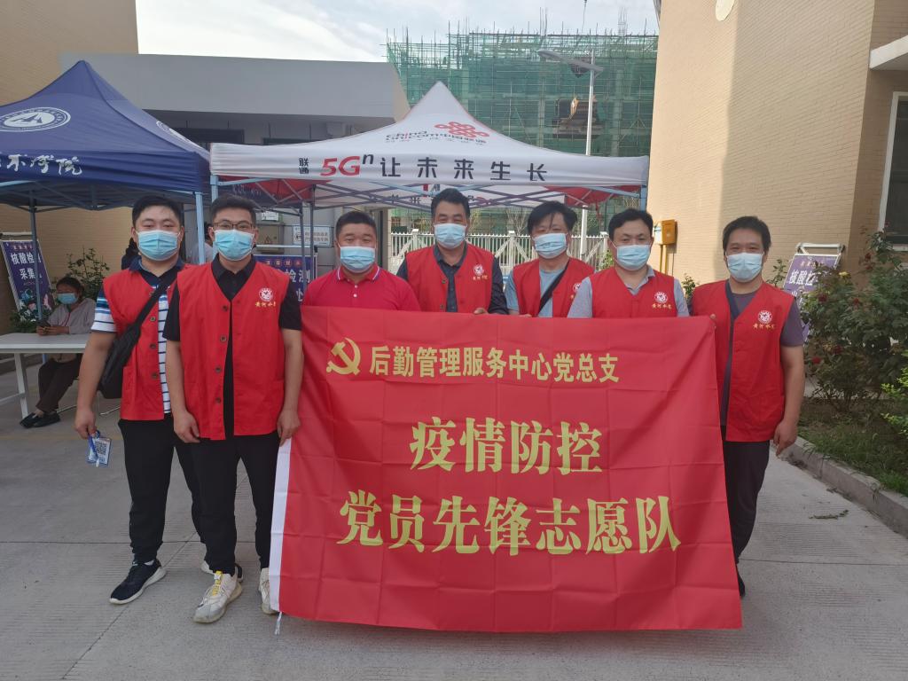 “请大家排好队,戴好口罩,保持一米距离,提前准备好健康码或身份证……”在全员核酸检测采样现场,处处可见后勤党员志愿者们的身影。