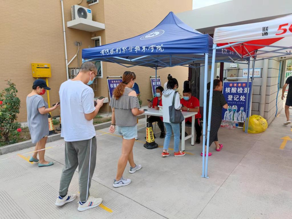 为保障全员核酸检测的顺利进行,后勤志愿者们早餐6点前就来到了核酸检测现场,提前对采样区和等候区的环境进行消杀,设置好遮阳棚、和警戒线等,确保6点核酸检测正式开始。在现场,志愿者们引导待检群众保持2米的安全距离,提醒群众佩戴好口罩、准备好健康码和身份证、引导群众有序排队,帮助老人完成信息采集,为群众答疑解惑等。志愿者们还帮助居住在小区的老人和小孩代领健康码,使老人、小孩可快速参与核酸检测,提高检测效率。