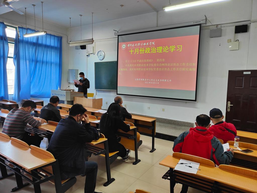 首先,支部书记带领党员共同学习了《中共黄河水利职业技术学院委员会意识形态工作责任制实施细则》《中共黄河水利职业技术学院委员会网络意识形态工作责任制实施细则》等文件内容。最后,王忠伟讲话。他强调,意识形态工作是党的一项极端重要工作,后勤全体党员要紧密结合工作实际,立足于自身岗位,牢记后勤服务宗旨,践行社会主义核心价值观,充分发挥意识形态宣传阵地作用,把握正确舆论导向,弘扬主旋律,传播正能量,激发全体干部职工团结奋进的强大力量。
