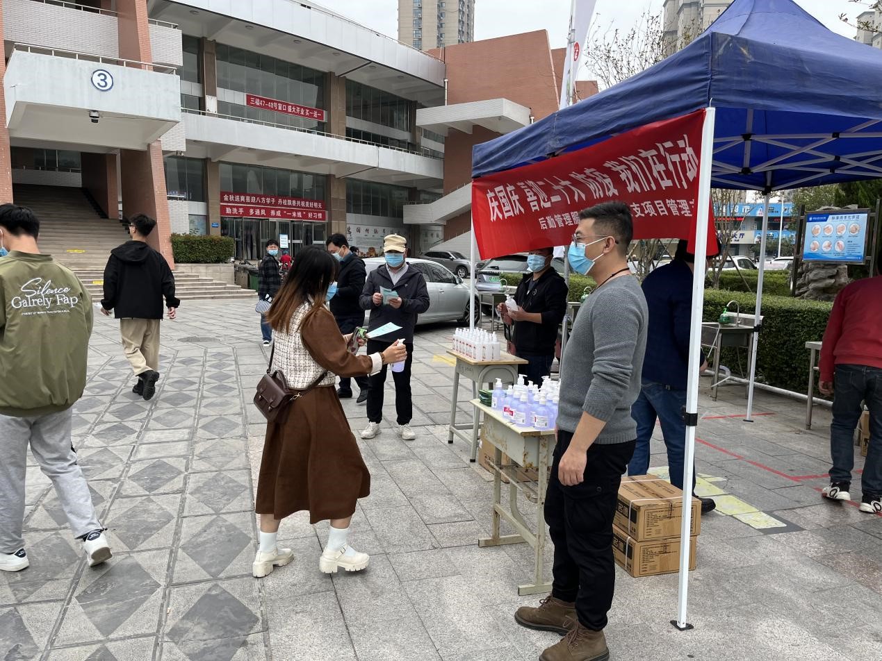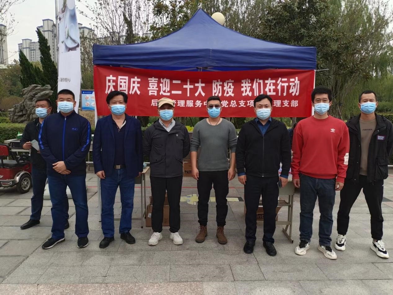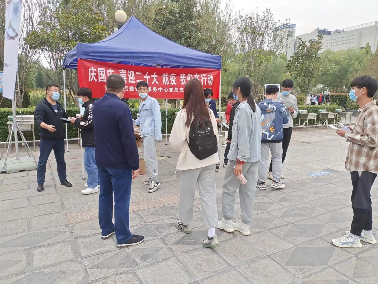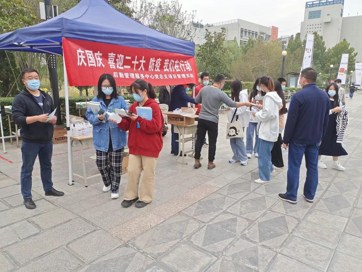 为庆祝祖国生日和喜迎党的二十大胜利召开,充分发挥党员先锋模范作用,近几日,后勤党总支在学生食堂主入口集中洗手区的开放空间,组织开展了“庆国庆 喜迎二十大,防疫我们在行动”主题党日活动。