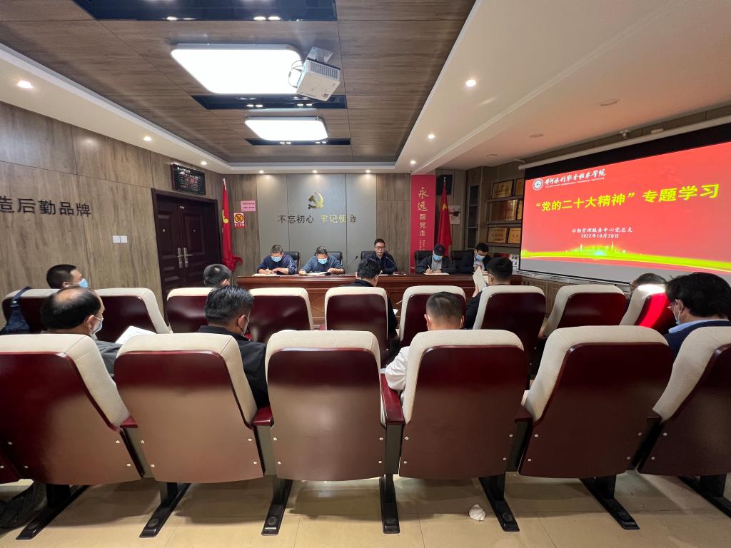 10月20日,后勤管理服务中心党总支召开总支扩大会,集中学习党的二十大精神。后勤党总支委员、支部委员、领导班子成员、科长及部门经理参加此次学习,总支书记王忠伟领学。
