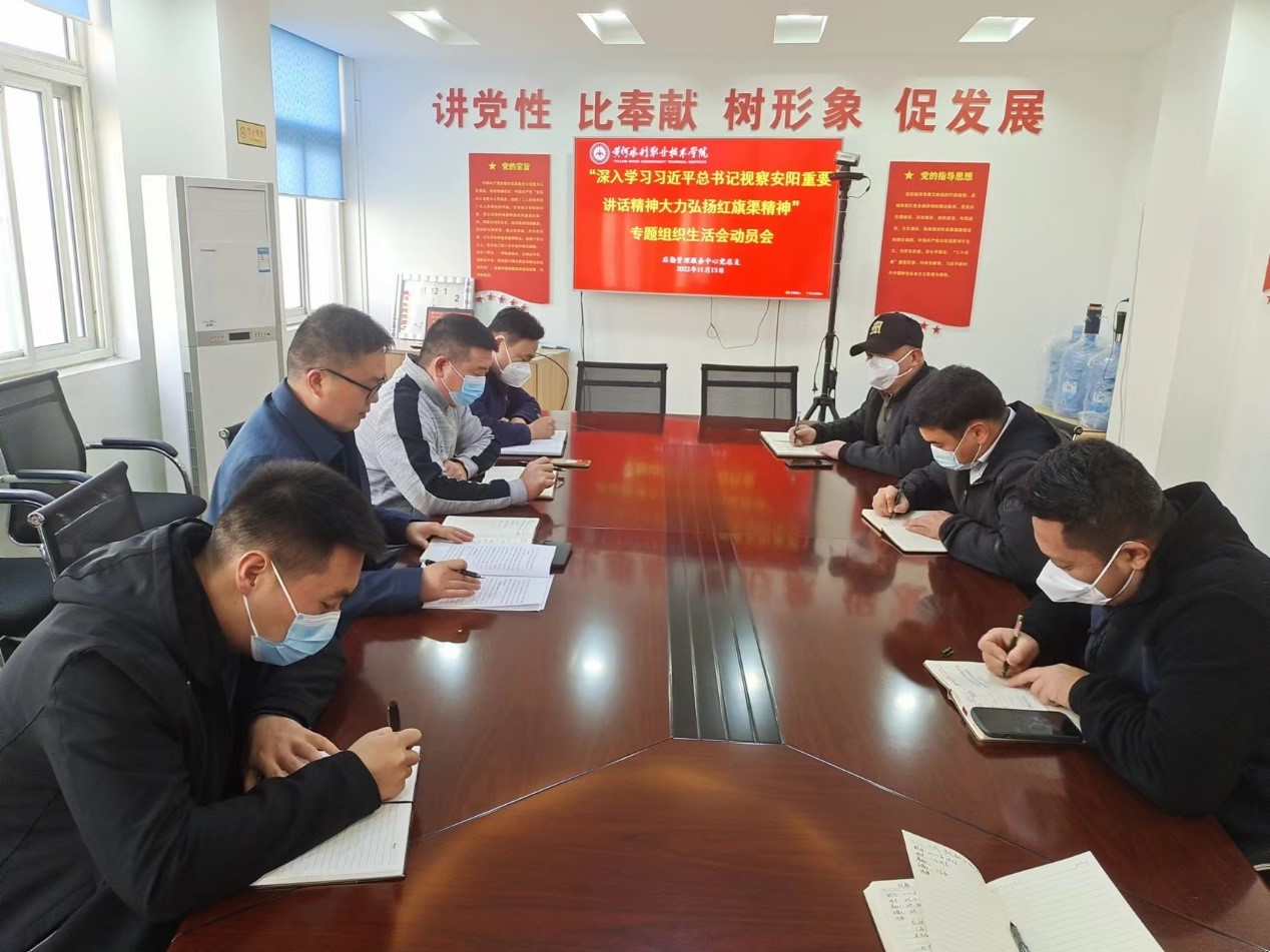 11月15日下午,后勤管理服务中心党总支在后勤会议室组织召开 “深入学习习近平总书记视察安阳重要讲话、大力弘扬红旗渠精神”专题组织生活会动员会。后勤领导班子成员、党总支委员、支部书记参加会议,会议由总支书记王忠伟主持。